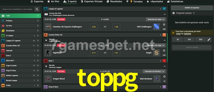 O toppg oferece uma grande seleção de opções de apostas em e-sports com probabilidades competitivas